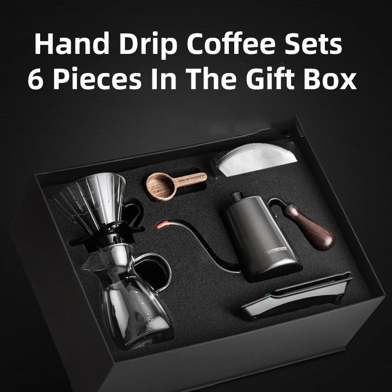 CAFEDE KONA hand drip coffee sets 6 PCS in pour-over coffee gift box (scale+Kettle+dripper+filterpa