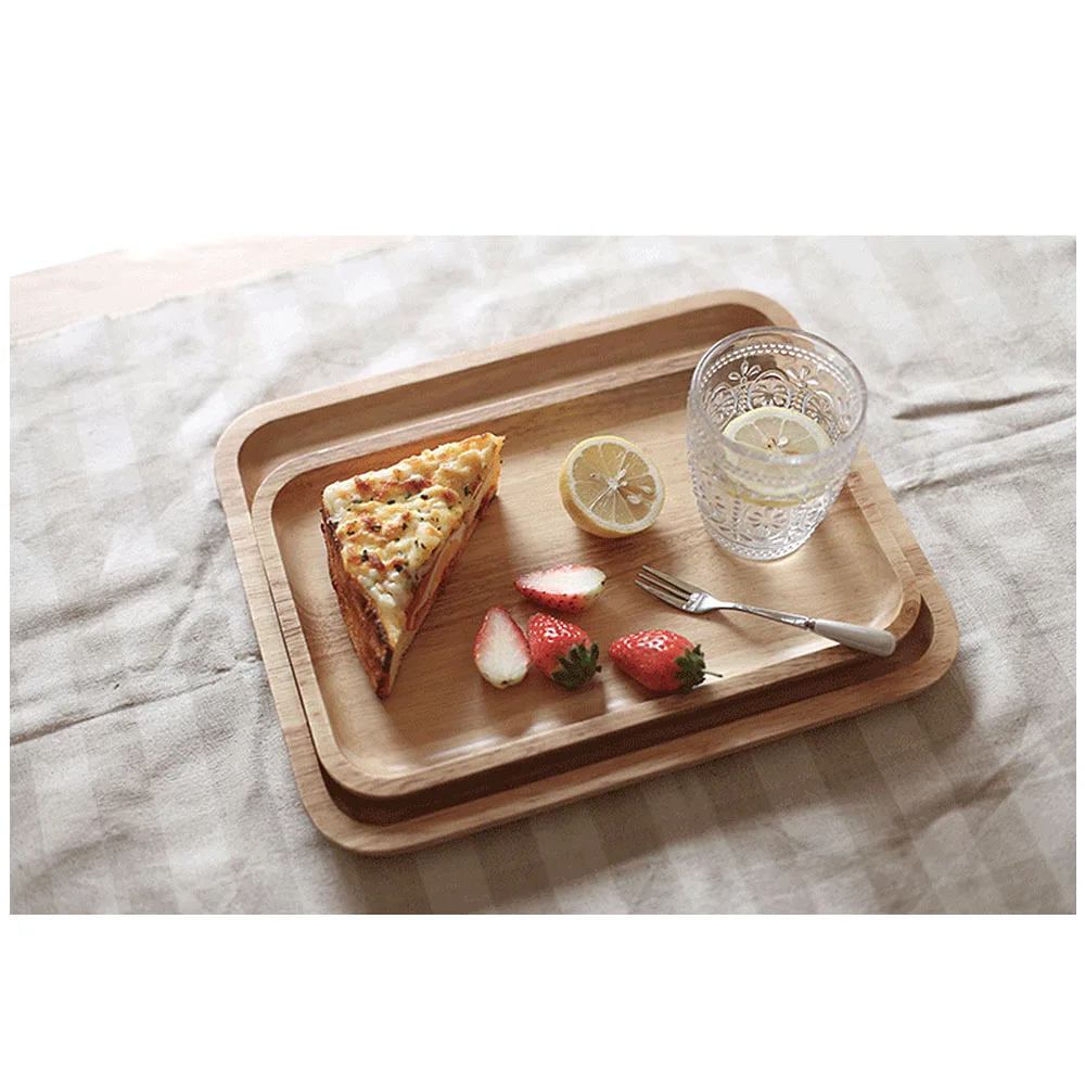 Wooden Serving Tray Rectangular Children's Breakfast Dishes Cake Plates Dishes for Dessert Food Ser